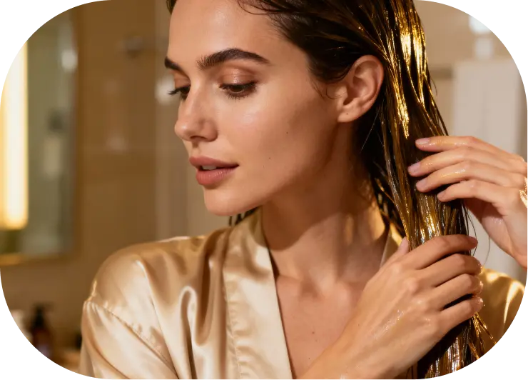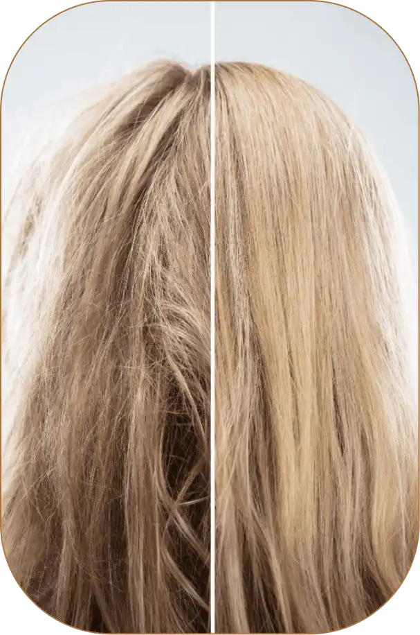 Aminoácidos e proteínas de origem vegetal suavizam a superfície do fio, selam cutículas e reduzem o frizz.
