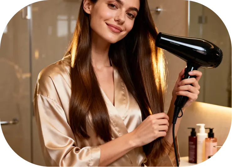 tratamento + efeito memória termoativado — leveza, movimento e brilho que evoluem a cada uso.